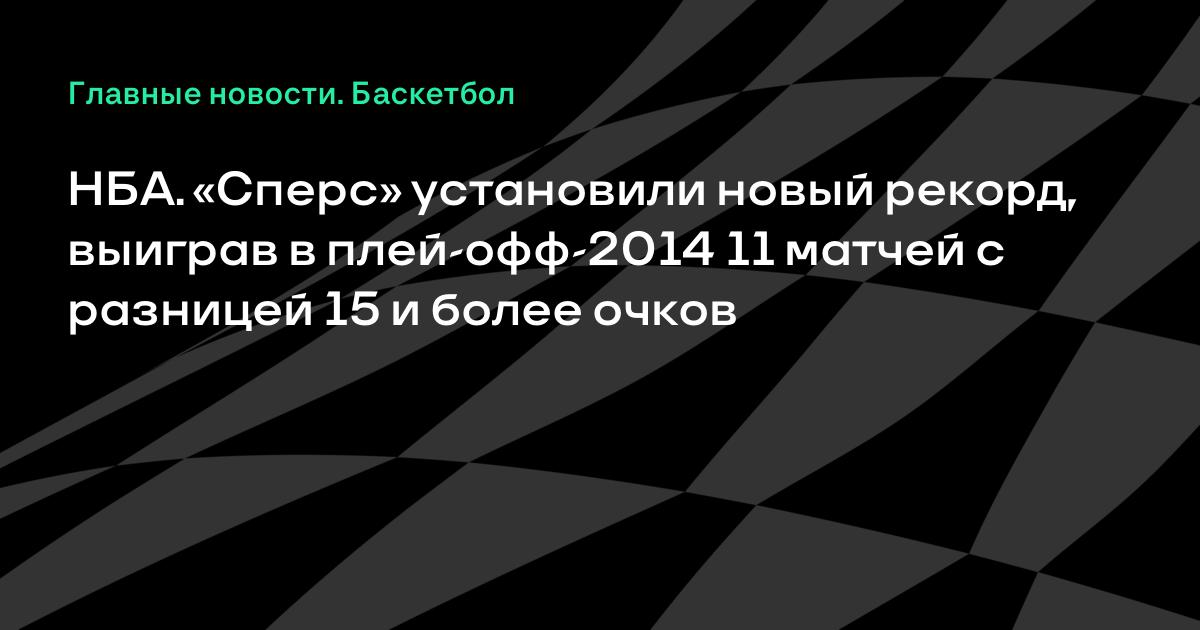 НБА. «Сперс» установили новый рекорд, выиграв в плей-офф-2014 11 матчей с разницей 15 и более очков