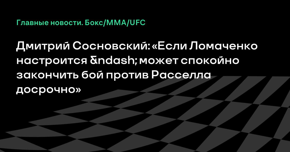 Дмитрий Сосновский: «Если Ломаченко настроится – может спокойно закончить бой против Расселла досрочно»