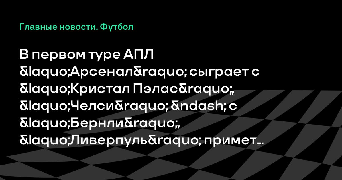 В первом туре АПЛ «Арсенал» сыграет с «Кристал Пэлас», «Челси» – с «Бернли», «Ливерпуль» примет «Саутгемптон»