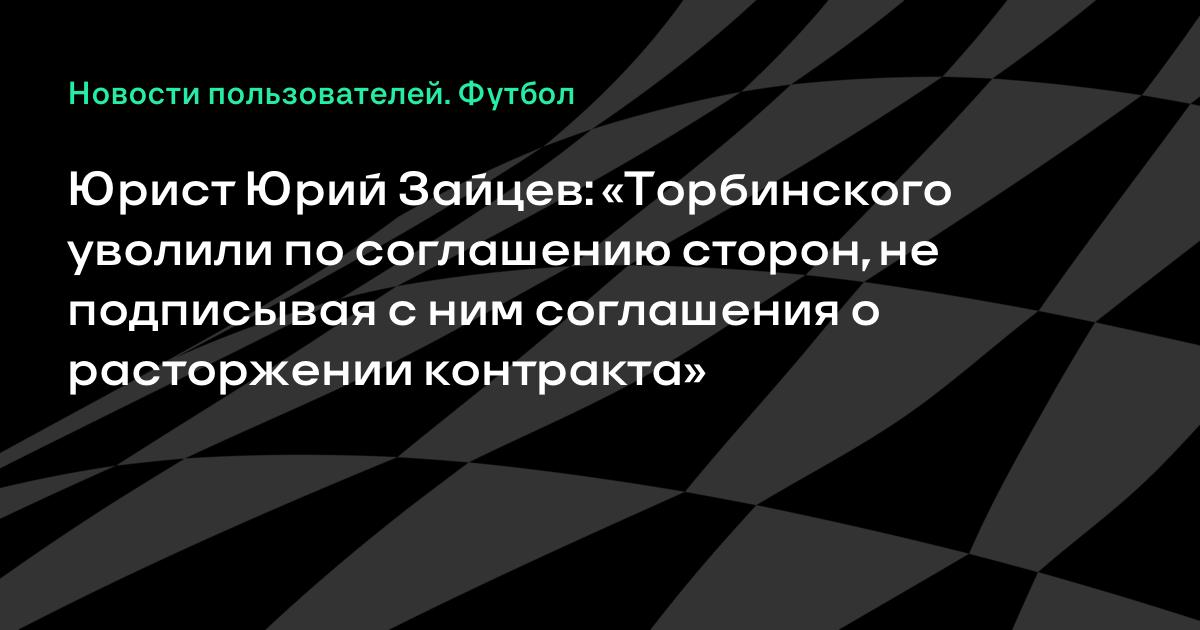 Юрист Юрий Зайцев: «Торбинского уволили по соглашению сторон, не подписывая с ним соглашения о расторжении контракта»