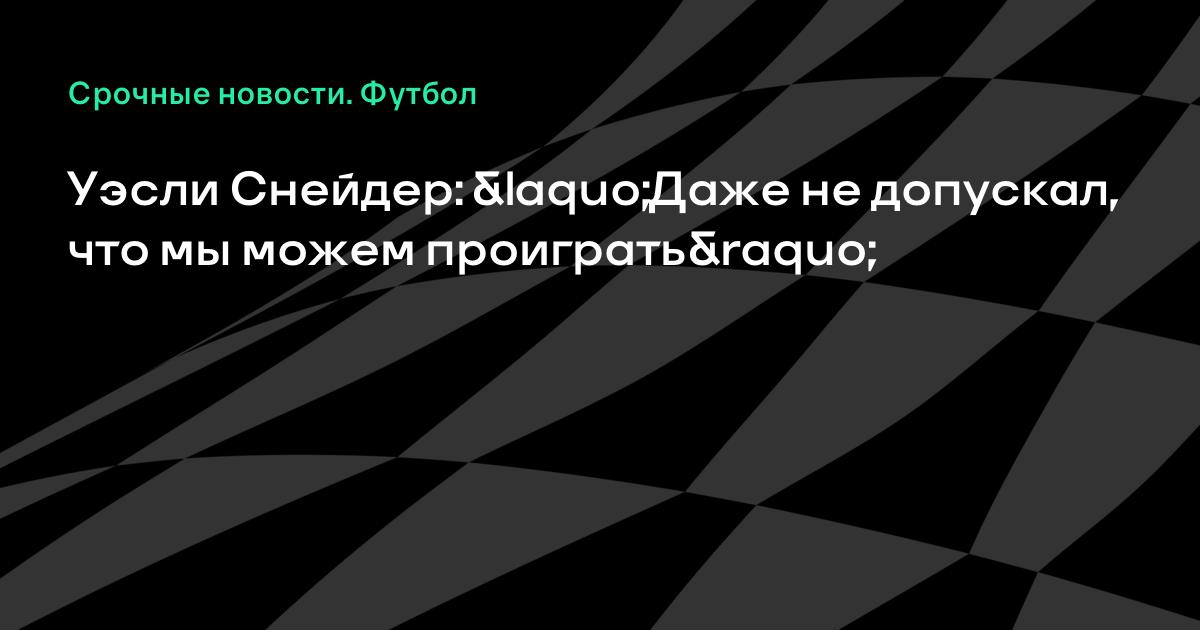 Уэсли Снейдер: «Даже не допускал, что мы можем проиграть»