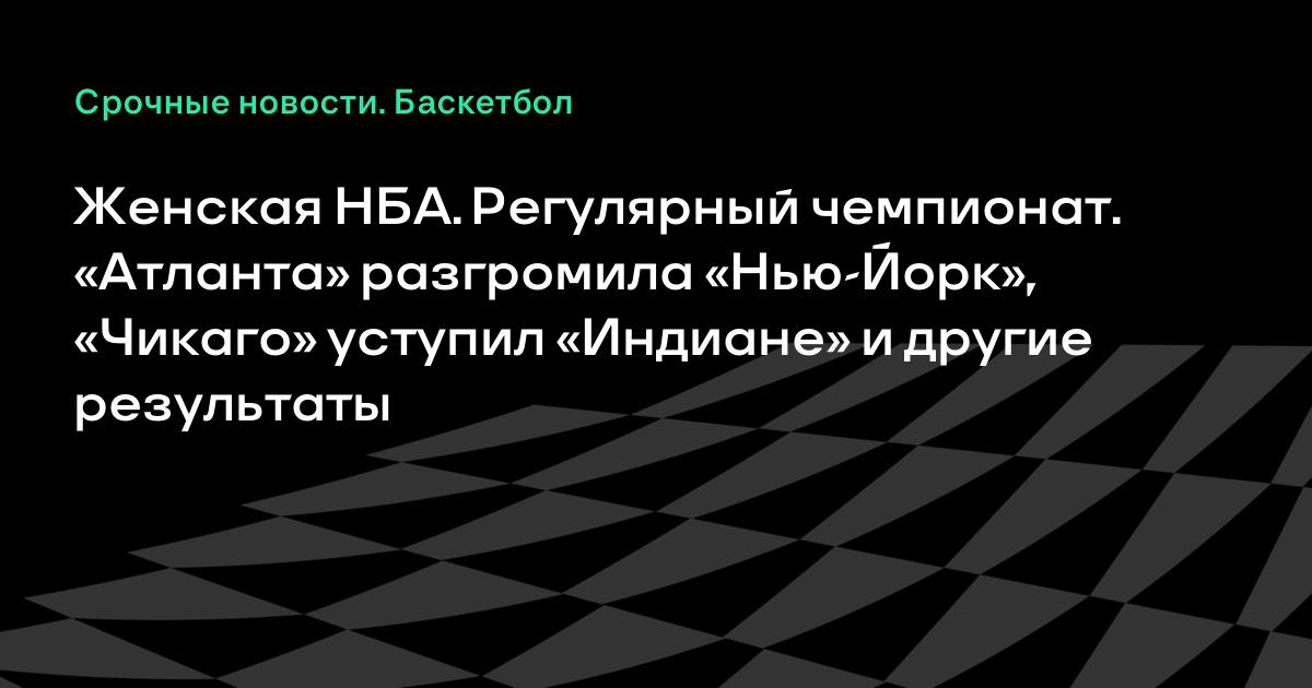 Женская НБА. Регулярный чемпионат. «Атланта» разгромила «Нью-Йорк», «Чикаго» уступил «Индиане» и другие результаты