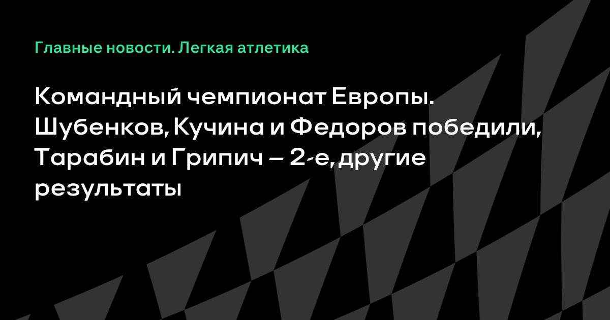 Командный чемпионат Европы. Шубенков, Кучина и Федоров победили, Тарабин и Грипич – 2-е, другие результаты