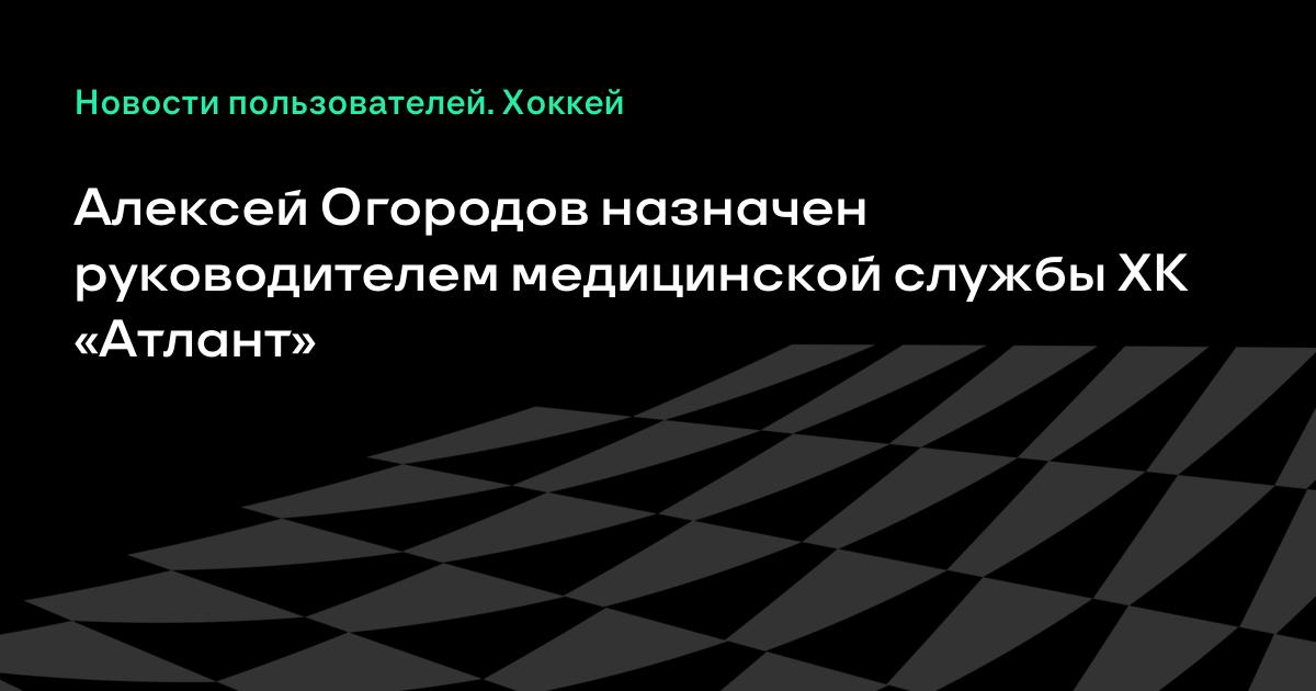 Новым руководителем медицинской служба хоккейного клуба «Атлант» стал Алексей Огородов, сообщается на официальном сайте подмосковной команды.