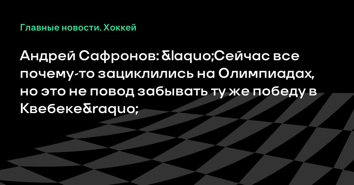Андрей Сафронов: «Сейчас все почему-то зациклились на Олимпиадах, но это не повод забывать ту же победу в Квебеке»