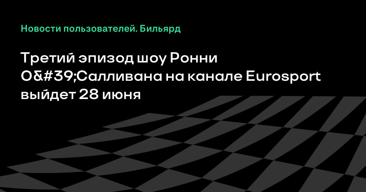 Третий эпизод шоу Ронни О'Салливана на канале Eurosport выйдет 28 июня