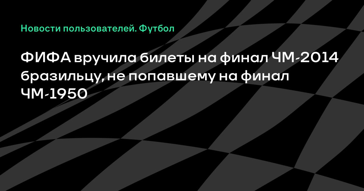 Международная федерация футбола (ФИФА) выдала 85-летнему бразильцу Хоедиру Санчо Бельмонте три билета на финал чемпионата мира взамен на билет на решающий матч ЧМ-1950, который также проходил в Бразилии, сообщает АП.