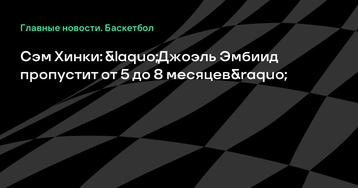Генеральный менеджер «Филадельфии» Сэм Хинки заявил, что травмированный новичок Джоэль Эмбиид пропустит от 5 до 8 месяцев, а не 3-6, как было заявлено после операции.