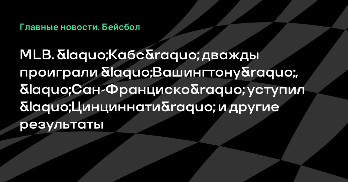 Сегодня прошли очередные матчи регулярного чемпионата Главной лиги бейсбола (MLB). «Кабс» дважды проиграли «Вашингтону» (0:3, 2:7), «Сан-Франциско» уступил «Цинциннати» (3:7).