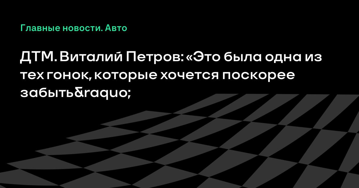 ДТМ. Виталий Петров: «Это была одна из тех гонок, которые хочется поскорее забыть»