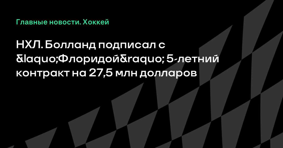 НХЛ. Болланд подписал с «Флоридой» 5-летний контракт на 27,5 млн долларов