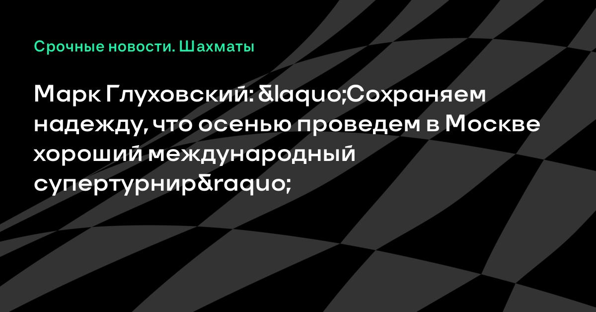 «Руководство РШФ по-прежнему сохраняет надежду, что осенью мы проведем в Москве хороший международный супертурнир. Но пока нет финальной договоренности со спонсорами, я не могу это озвучивать – чтобы не вводить любителей шахмат в искушение», – цитирует Глуховского «Р-Спорт».