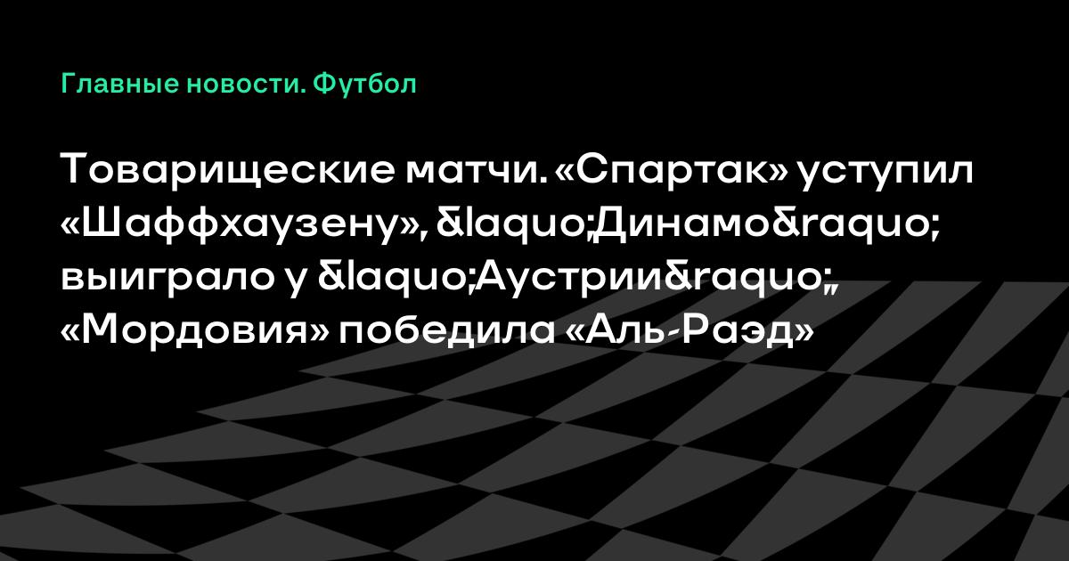 Товарищеские матчи. «Спартак» уступил «Шаффхаузену», «Динамо» выиграло у «Аустрии», «Мордовия» победила «Аль-Раэд»
