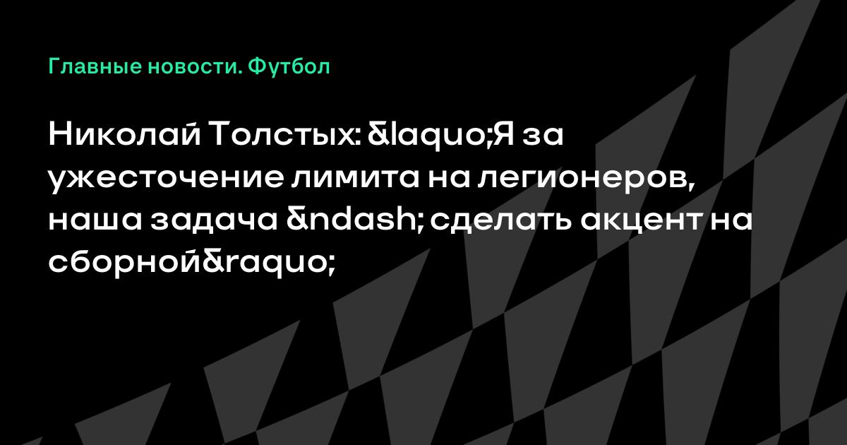 Президент РФС Николай Толстых на встрече с журналистами обозначил свою позицию по вопросу о лимите на легионеров в чемпионате России, передает главный редактор Sports.ru Юрий Дудь.