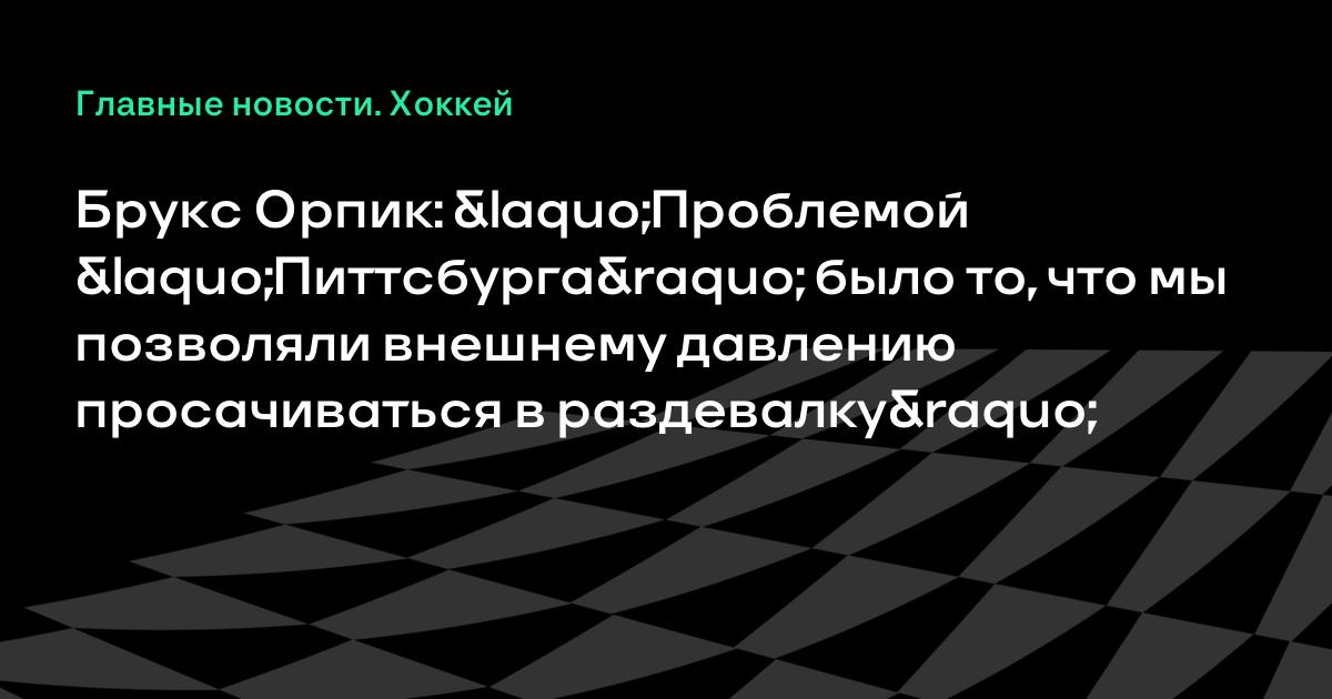 Брукс Орпик: «Проблемой «Питтсбурга» было то, что мы позволяли внешнему давлению просачиваться в раздевалку»