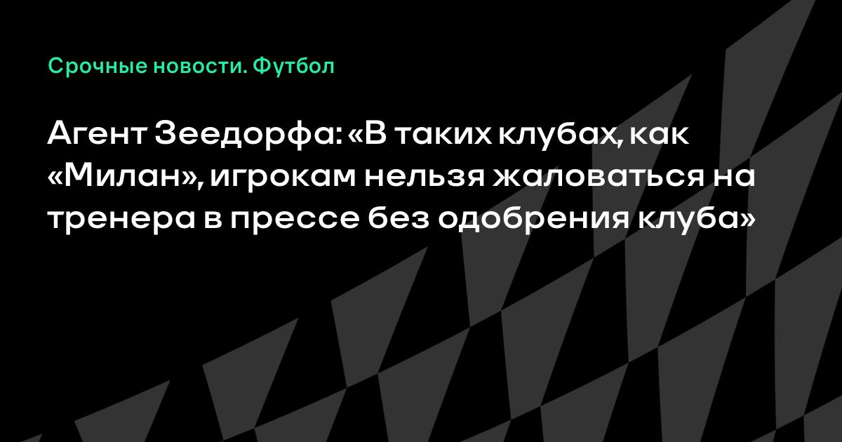 Агент Зеедорфа: «В таких клубах, как «Милан», игрокам нельзя жаловаться на тренера в прессе без одобрения клуба»