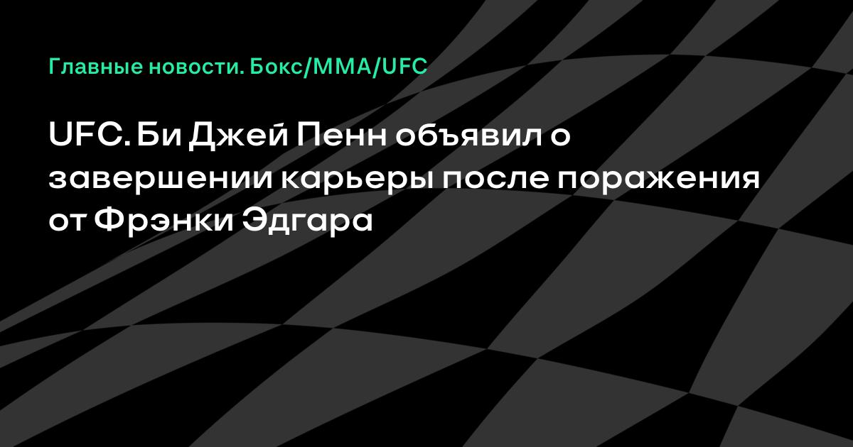 Бывший чемпион UFC в двух весовых категориях Би Джей Пенн (16-10) потерпел поражение техническим нокаутом от Фрэнки Эдгара на прошедшем турнире UFC в Лас-Вегасе, после чего объявил о завершении карьеры, которую начал еще в 2001 году.