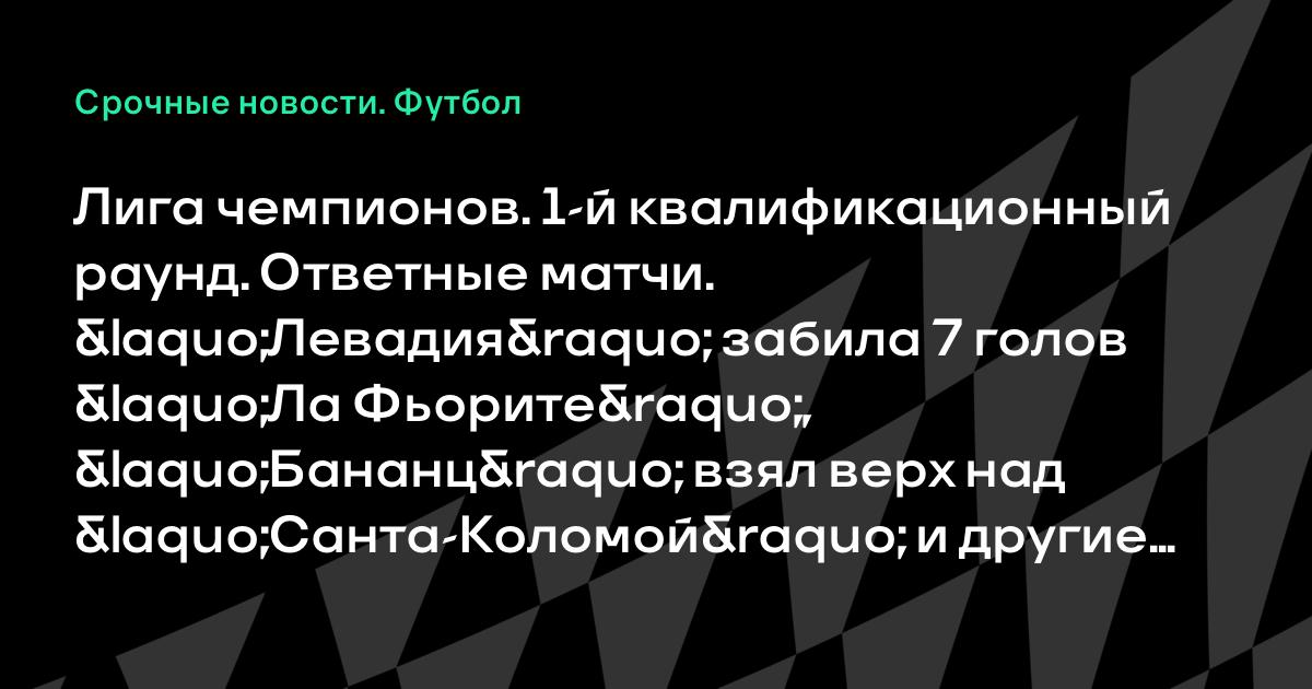 Лига чемпионов. 1-й квалификационный раунд. Ответные матчи. «Левадия» забила 7 голов «Ла Фьорите», «Бананц» взял верх над «Санта-Коломой» и другие результаты