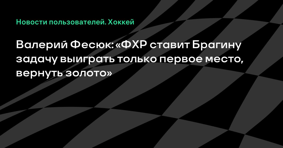 Валерий Фесюк: «ФХР ставит Брагину задачу выиграть только первое место, вернуть золото»
