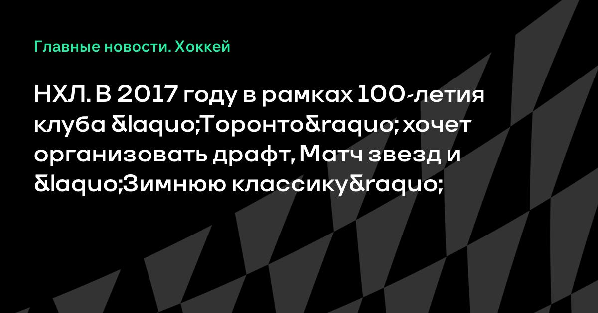 НХЛ. В 2017 году в рамках 100-летия клуба «Торонто» хочет организовать драфт, Матч звезд и «Зимнюю классику»