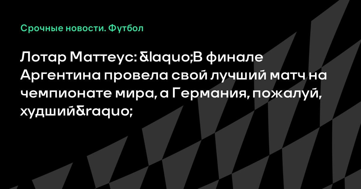 Известный в прошлом защитник сборной Германии Лотар Маттеус поделился мнением о финальной игре чемпионата мира, в которой немецкая сборная переиграла аргентинскую со счетом 1:0.