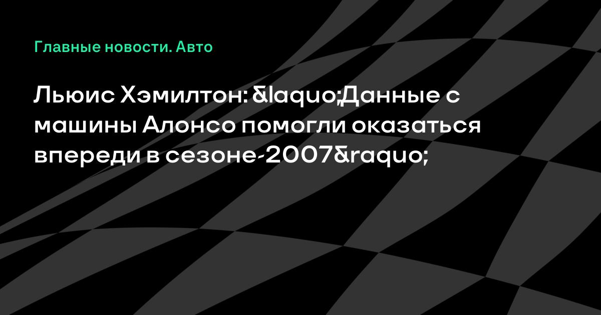 Льюис Хэмилтон: «Данные с машины Алонсо помогли оказаться впереди в сезоне-2007»