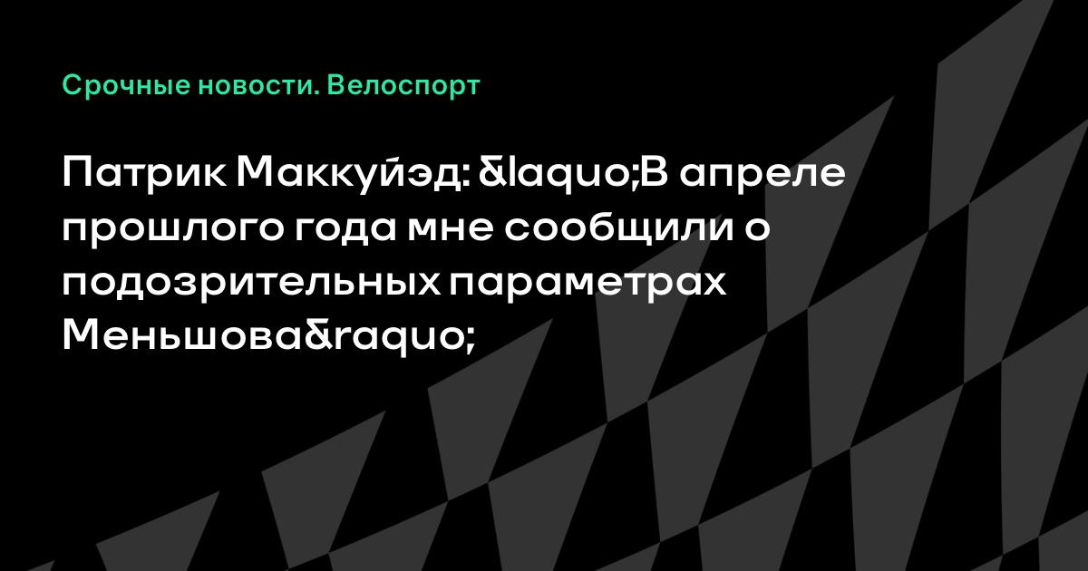 Патрик Маккуйэд: «В апреле прошлого года мне сообщили о подозрительных параметрах Меньшова»
