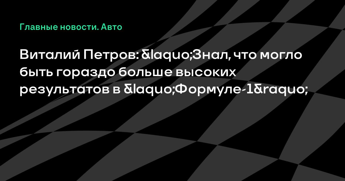 Виталий Петров: «Знал, что могло быть гораздо больше высоких результатов в «Формуле-1»