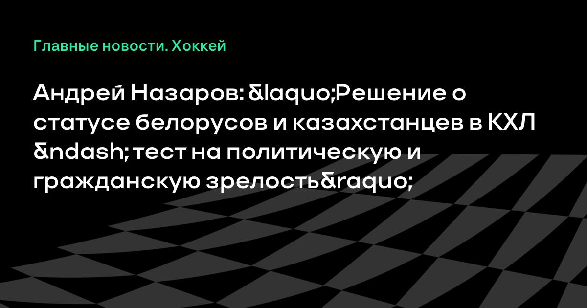 Андрей Назаров: «Решение о статусе белорусов и казахстанцев в КХЛ – тест на политическую и гражданскую зрелость»