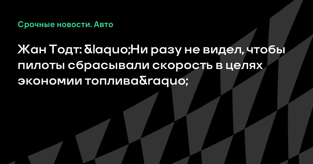 Жан Тодт: «Ни разу не видел, чтобы пилоты сбрасывали скорость в целях экономии топлива»