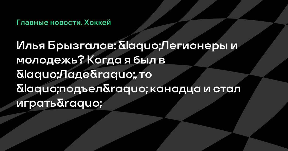 Илья Брызгалов: «Легионеры и молодежь? Когда я был в «Ладе», то «подъел» канадца и стал играть»