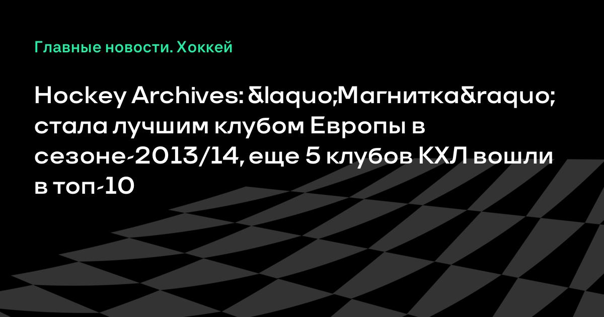 Hockey Archives: «Магнитка» стала лучшим клубом Европы в сезоне-2013/14, еще 5 клубов КХЛ вошли в топ-10