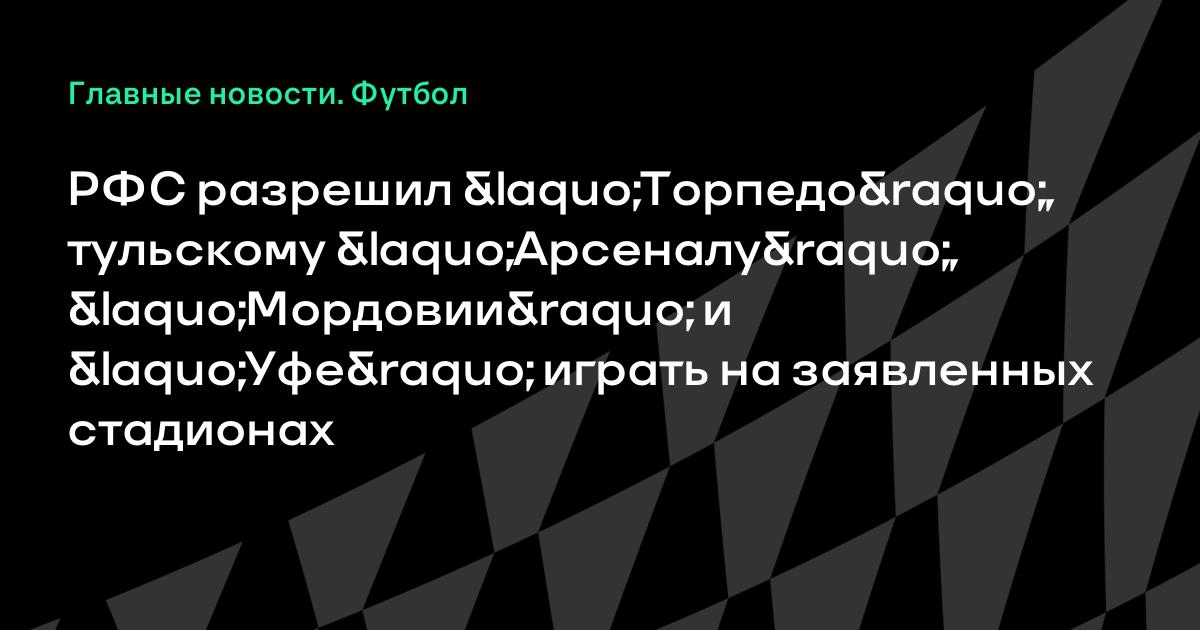 РФС разрешил «Торпедо», тульскому «Арсеналу», «Мордовии» и «Уфе» играть на заявленных стадионах