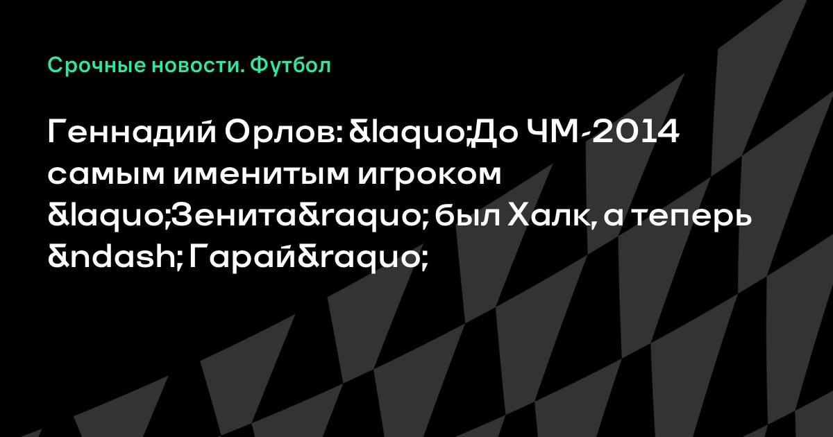 Геннадий Орлов: «До ЧМ-2014 самым именитым игроком «Зенита» был Халк, а теперь – Гарай»