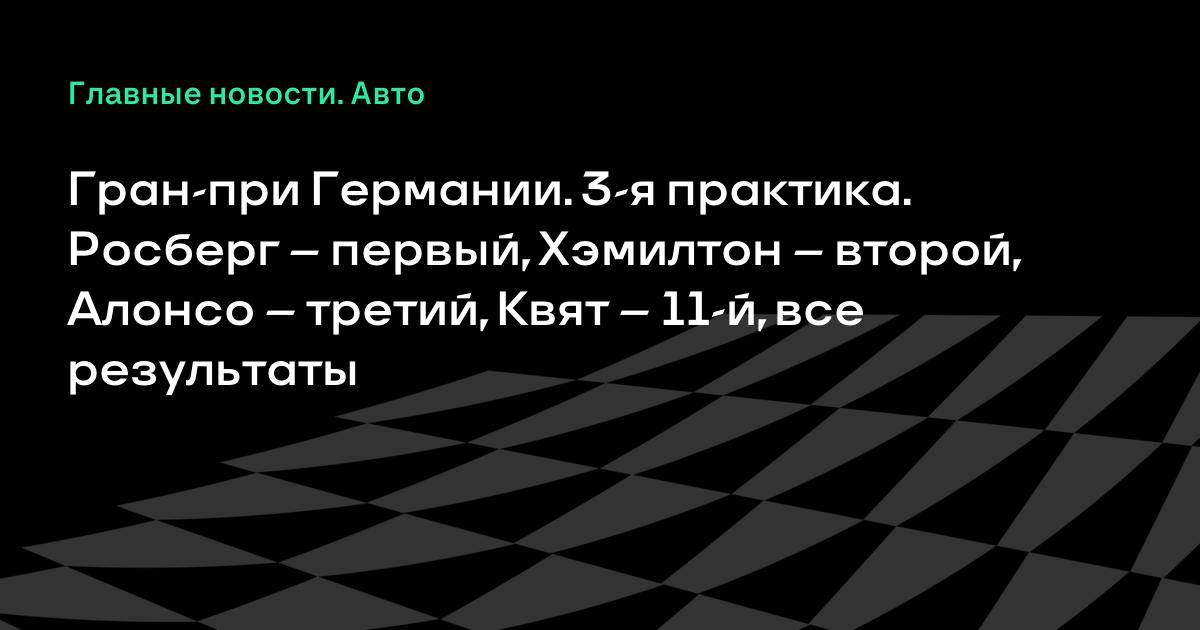 Гран-при Германии. 3-я практика. Росберг – первый, Хэмилтон – второй, Алонсо – третий, Квят – 11-й, все результаты