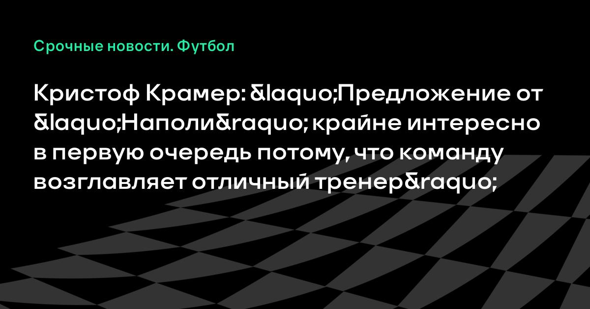 Кристоф Крамер: «Предложение от «Наполи» крайне интересно в первую очередь потому, что команду возглавляет отличный тренер»