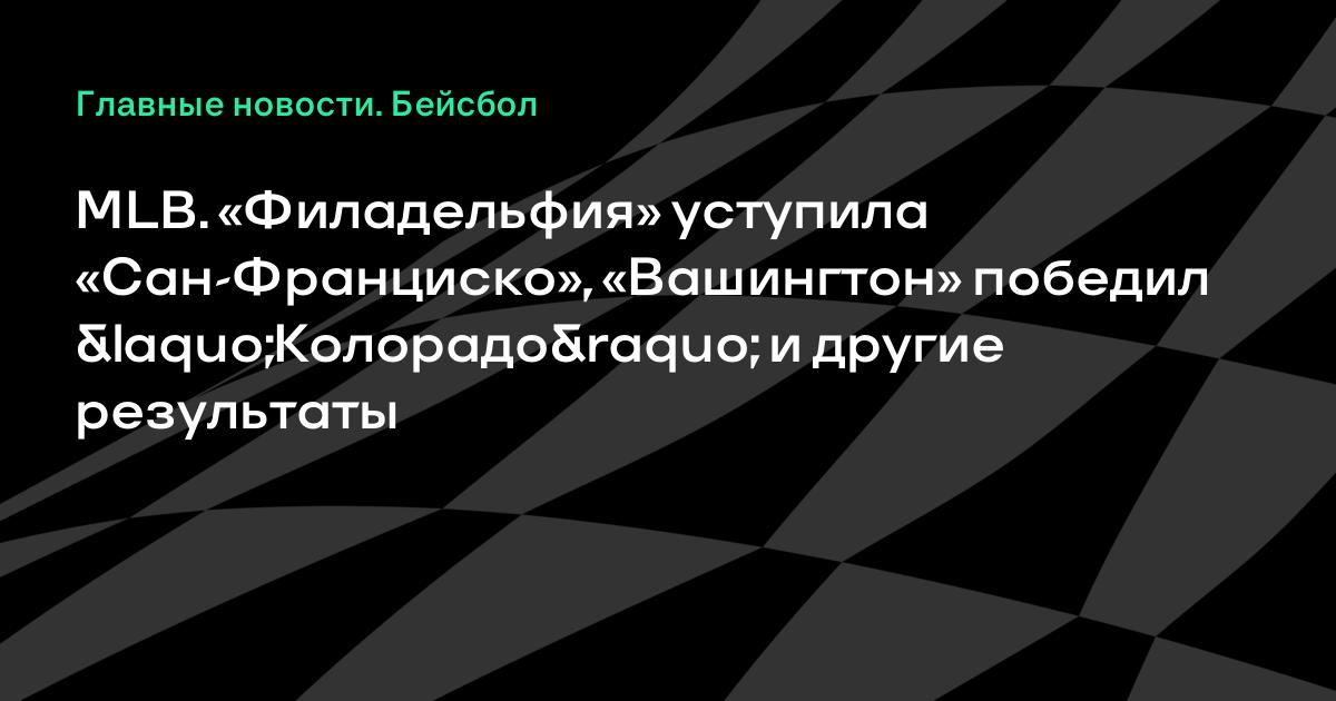 MLB. «Филадельфия» уступила «Сан-Франциско», «Вашингтон» победил «Колорадо» и другие результаты