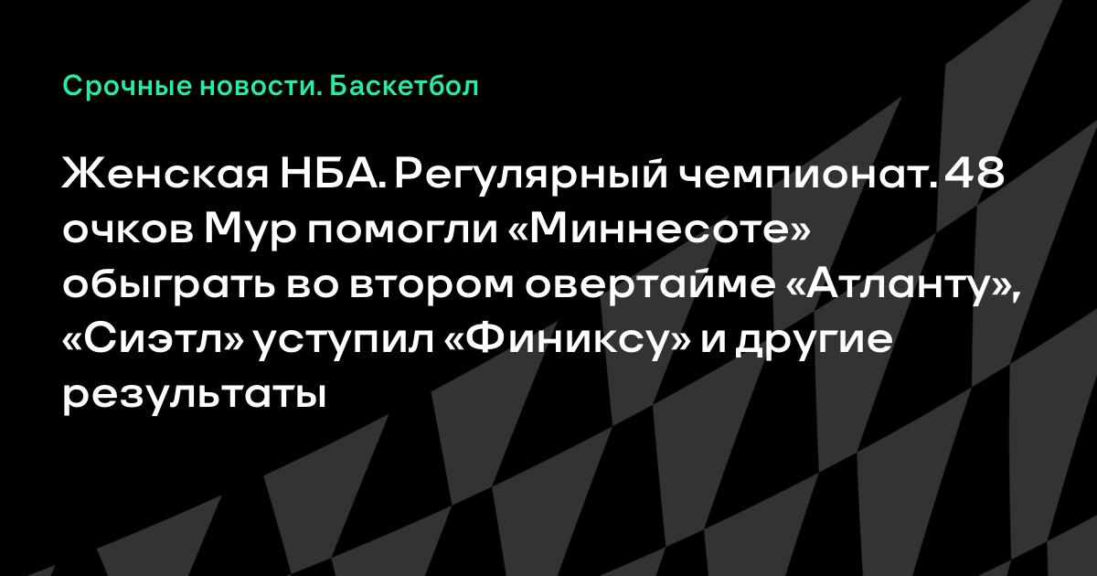 Женская НБА. Регулярный чемпионат. 48 очков Мур помогли «Миннесоте» обыграть во втором овертайме «Атланту», «Сиэтл» уступил «Финиксу» и другие результаты
