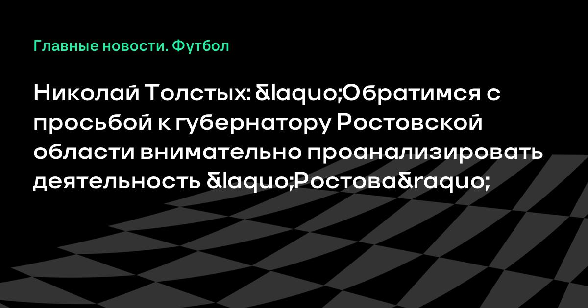 Николай Толстых: «Обратимся с просьбой к губернатору Ростовской области внимательно проанализировать деятельность «Ростова»