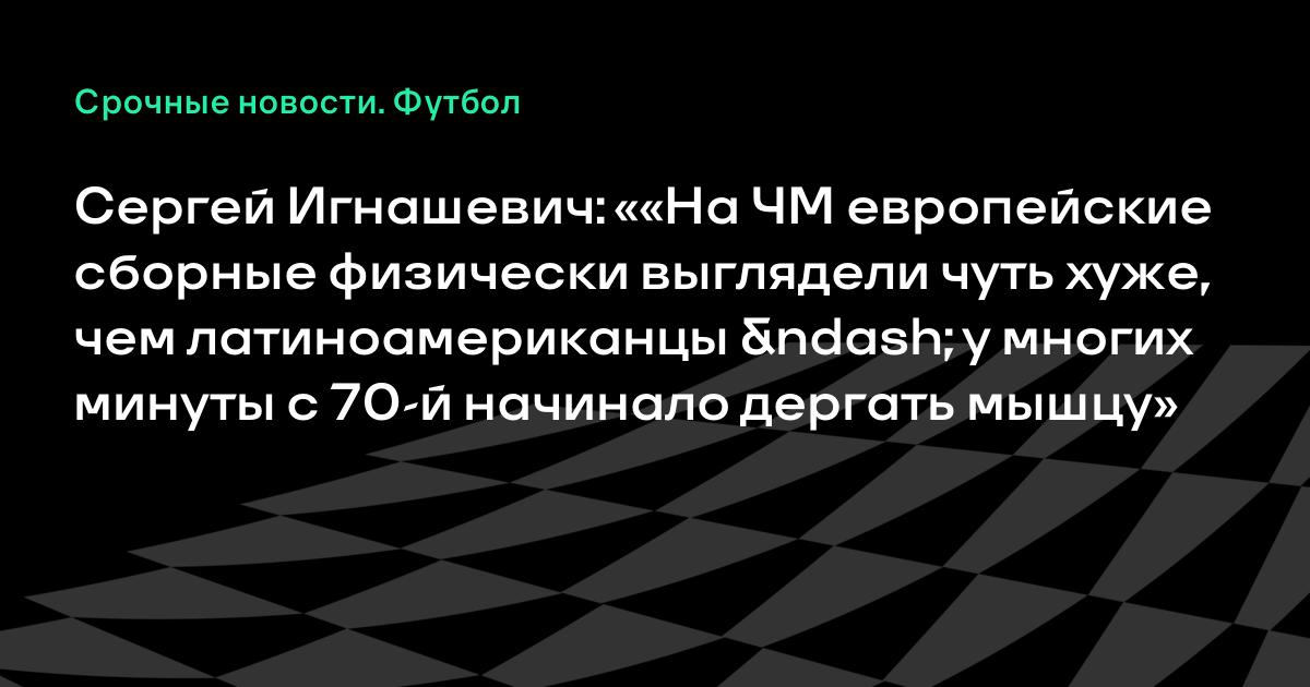 Сергей Игнашевич: ««На ЧМ европейские сборные физически выглядели чуть хуже, чем латиноамериканцы – у многих минуты с 70-й начинало дергать мышцу»