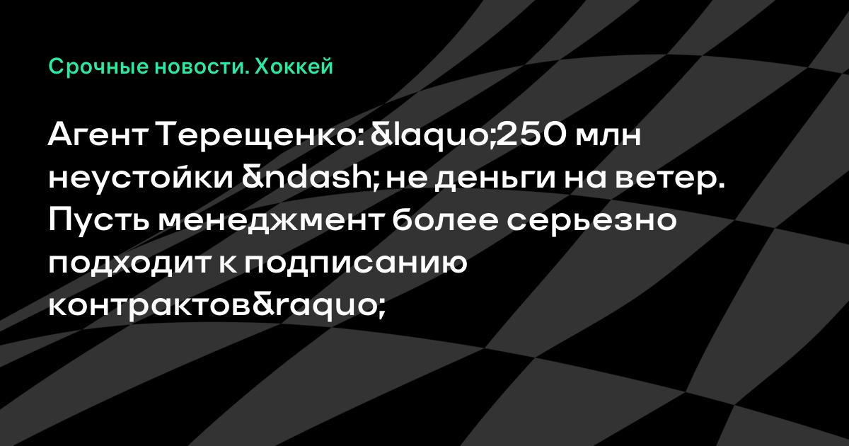 Агент нападающего «Динамо» Алексея Терещенко Валерий Матвеев прокомментировал информацию о том, что нынешним летом клубы КХЛ в общей сложности выплатили хоккеистам 250 миллионов рублей неустойки за разрывы контрактов.