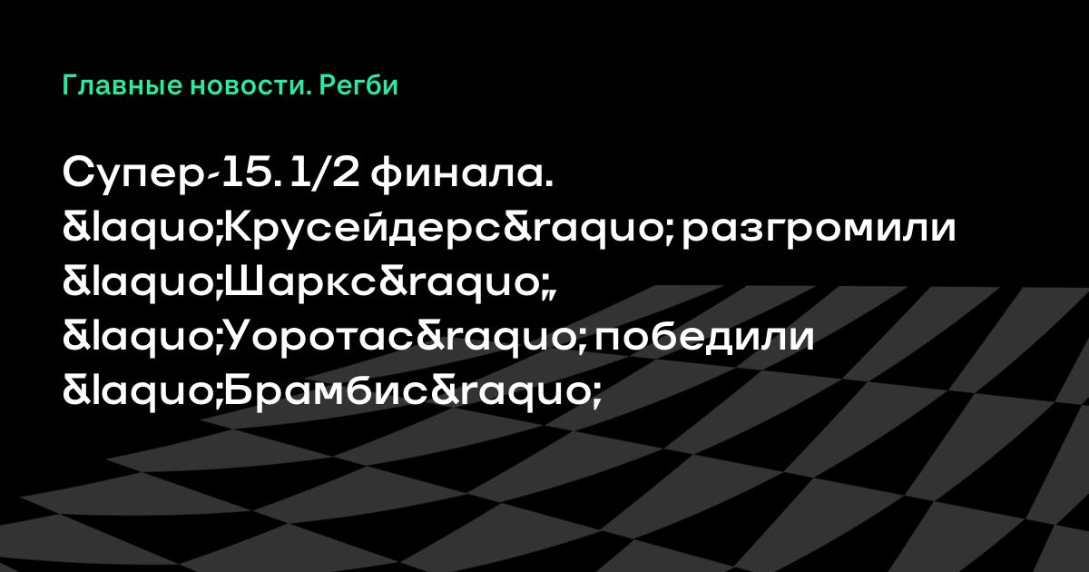 Сегодня в регбийном турнире Супер-15 прошли полуфиналы. «Крусейдерс» разгромили «Шаркс» (38:6), «Уоротас» победили «Брамбис» (26:8).