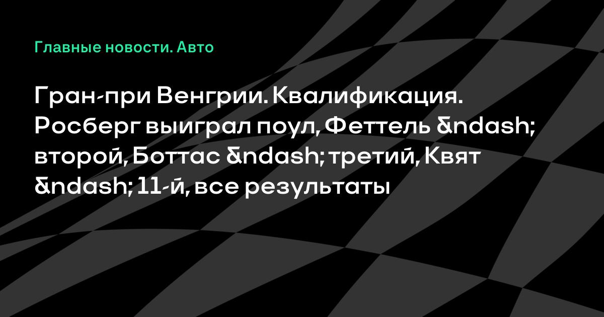 Гран-при Венгрии. Квалификация. Росберг выиграл поул, Феттель – второй, Боттас – третий, Квят – 11-й, все результаты