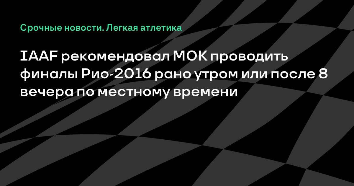 Президент Всероссийской федерации легкой атлетики (ВФЛА) Валентин Балахничев сообщил, что Международная ассоциация легкоатлетических федераций (IAAF) рекомендовала Международному олимпийскому комитету (МОК) проводить финалы легкой атлетики в Рио-де-Жанейро-2016 рано утром или после восьми вечера по местному времени.