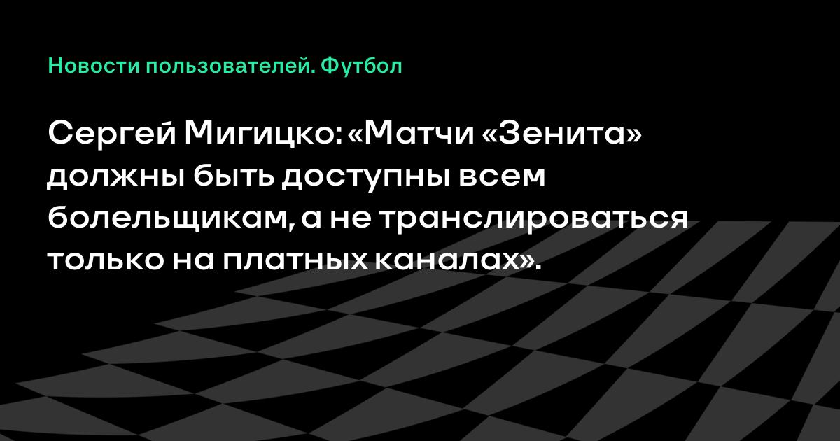 Сергей Мигицко: «Матчи «Зенита» должны быть доступны всем болельщикам, а не транслироваться только на платных каналах».