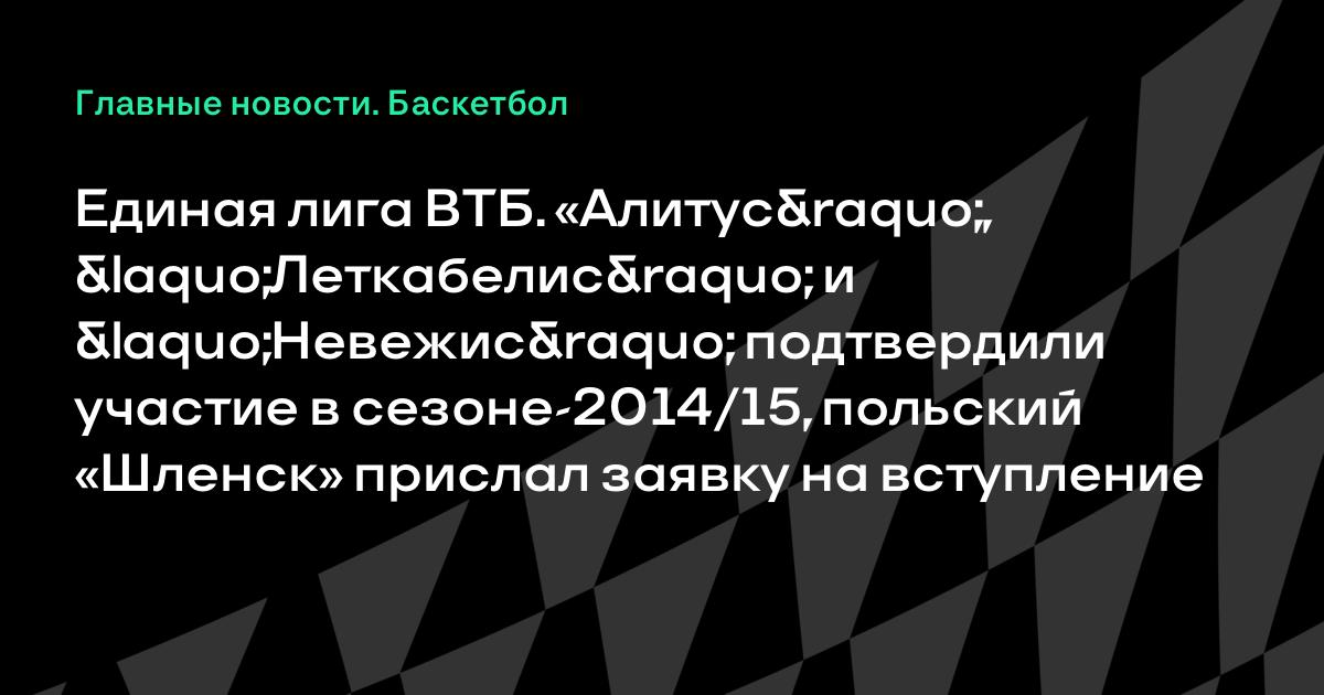 Литовские «Алитус», «Леткабелис» и «Невежис» подтвердили свое желание выступить в Единой лиге ВТБ в сезоне-2014/15, передает ИТАР-ТАСС со ссылкой на исполнительного директора турнира Томаса Пачесаса. Кроме того, заявку на участие в турнире в сезоне-2014/15 прислал польский «Шленск».