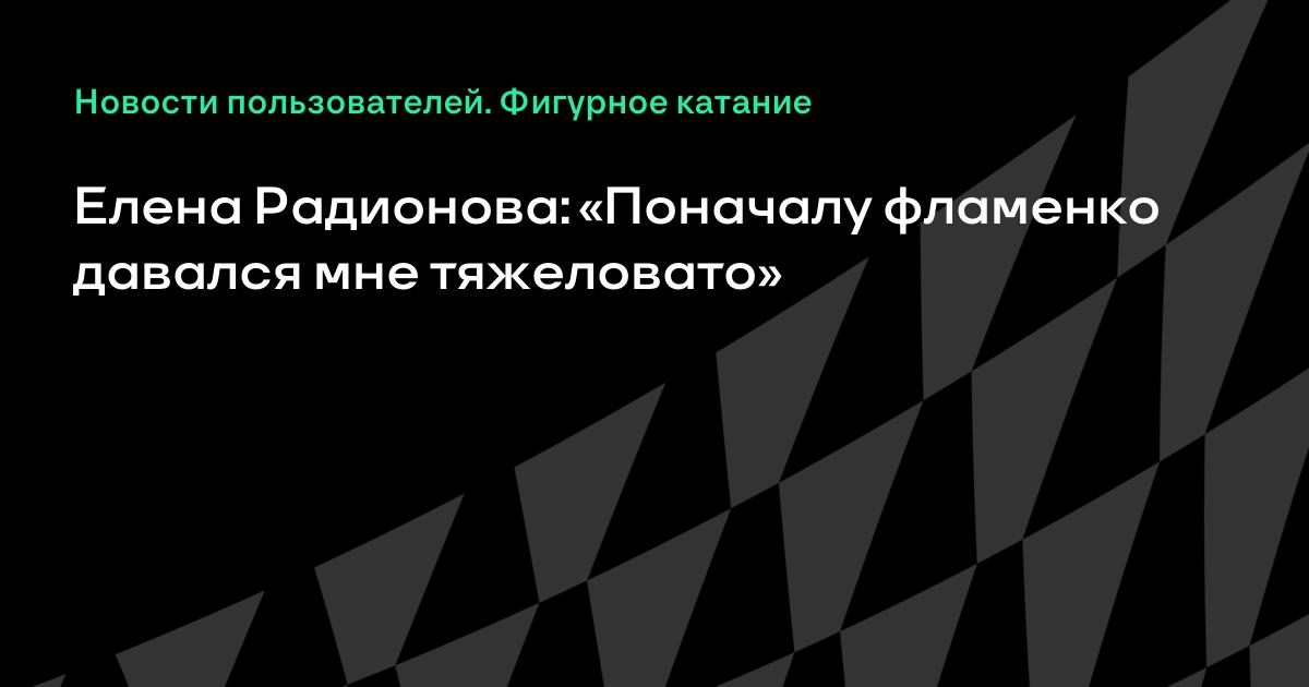 Двукратная чемпионка мира среди юниоров российская фигуристка Елена Радионова сообщила, что танец фламенко, выбранный для новой короткой программы, стал для нее более комфортным. К новому сезону фигуристка вместе с постановщиками Ильей Авербухом и Еленой Масленниковой выбрала для короткой программы фламенко, для произвольной – классическую музыку Сергея Рахманинова.