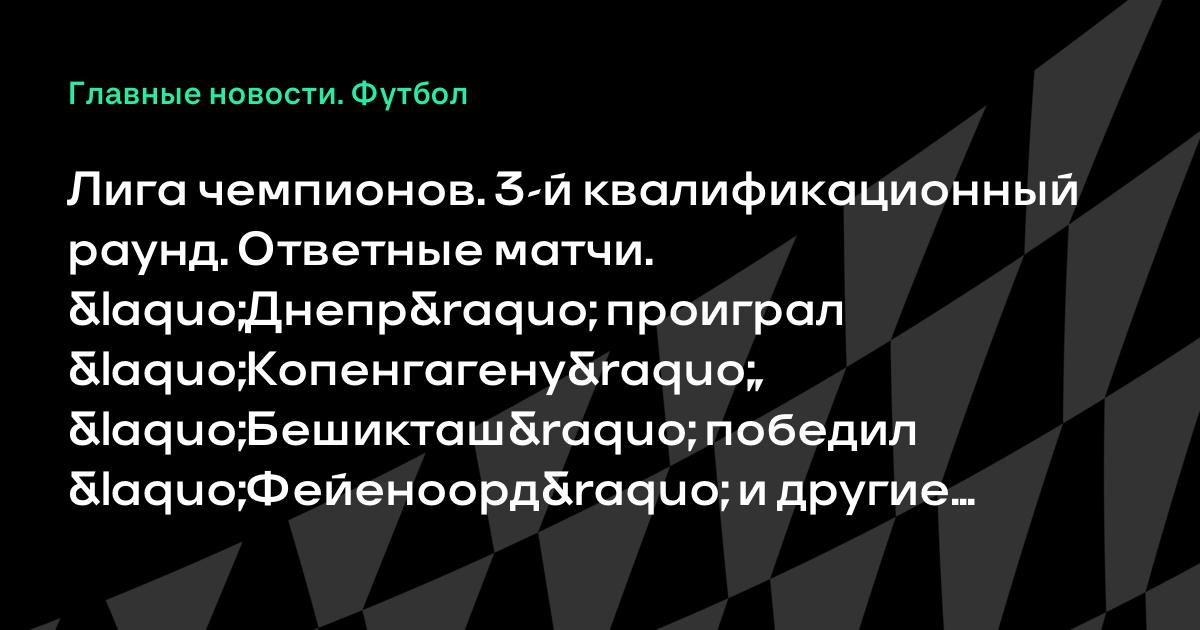 Лига чемпионов. 3-й квалификационный раунд. Ответные матчи. «Днепр» проиграл «Копенгагену», «Бешикташ» победил «Фейеноорд» и другие результаты