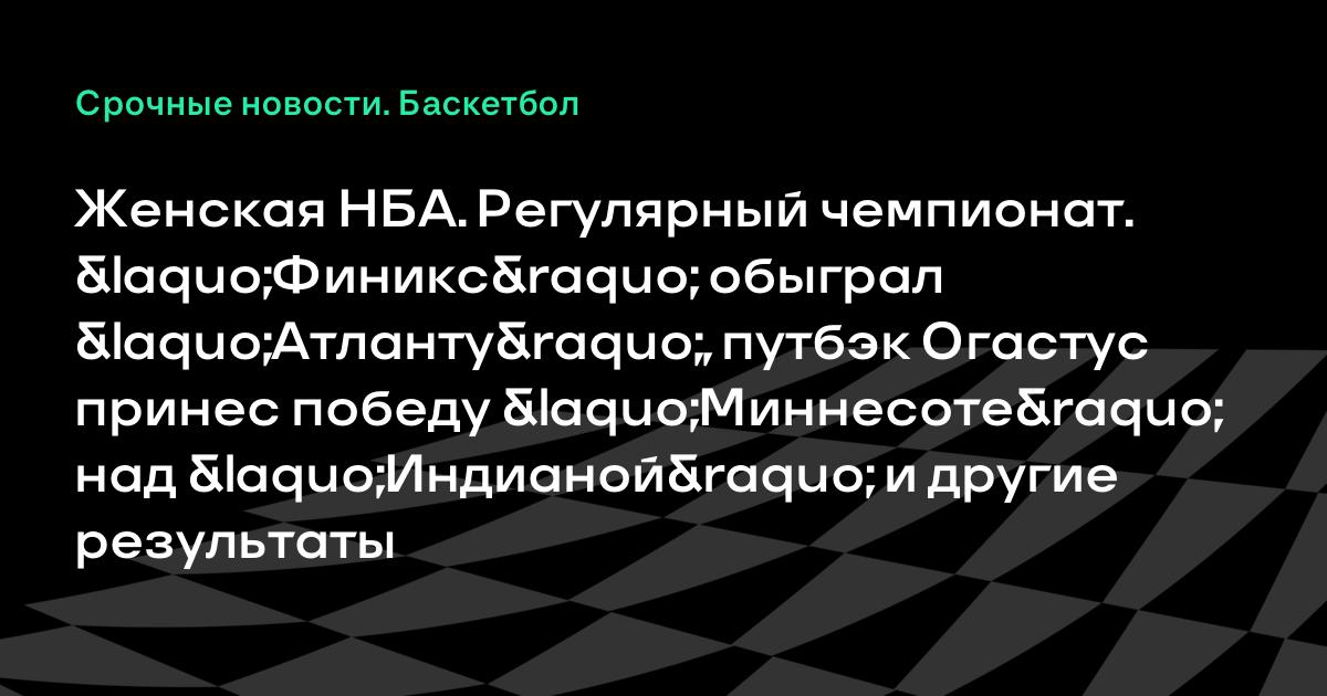 Женская НБА. Регулярный чемпионат. «Финикс» обыграл «Атланту», путбэк Огастус принес победу «Миннесоте» над «Индианой» и другие результаты