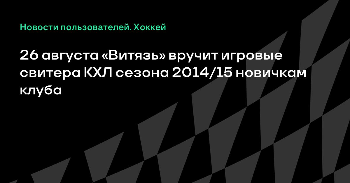 26 августа «Витязь» вручит игровые свитера КХЛ сезона 2014/15 новичкам клуба